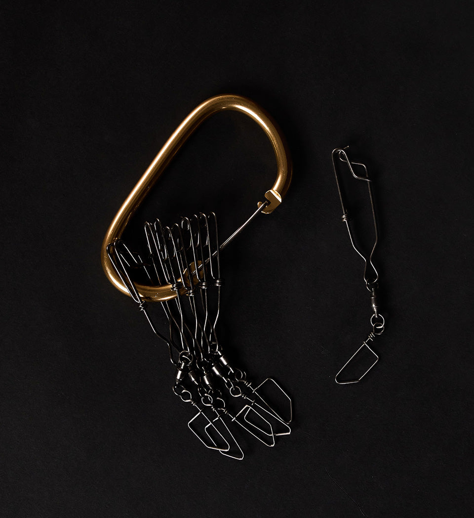 On decoys, install EasySnap Decoy Drops to unused EasyAttach Eye Bolts. Store Jerk Rig Decoys on their own separate HangAll Carabiner, or add EasySnap Decoy Drops to decoys already rigged and in your spread to add further versatility to each decoy. 6 stainless steel drops and 1 HangAll Carabiner included.
