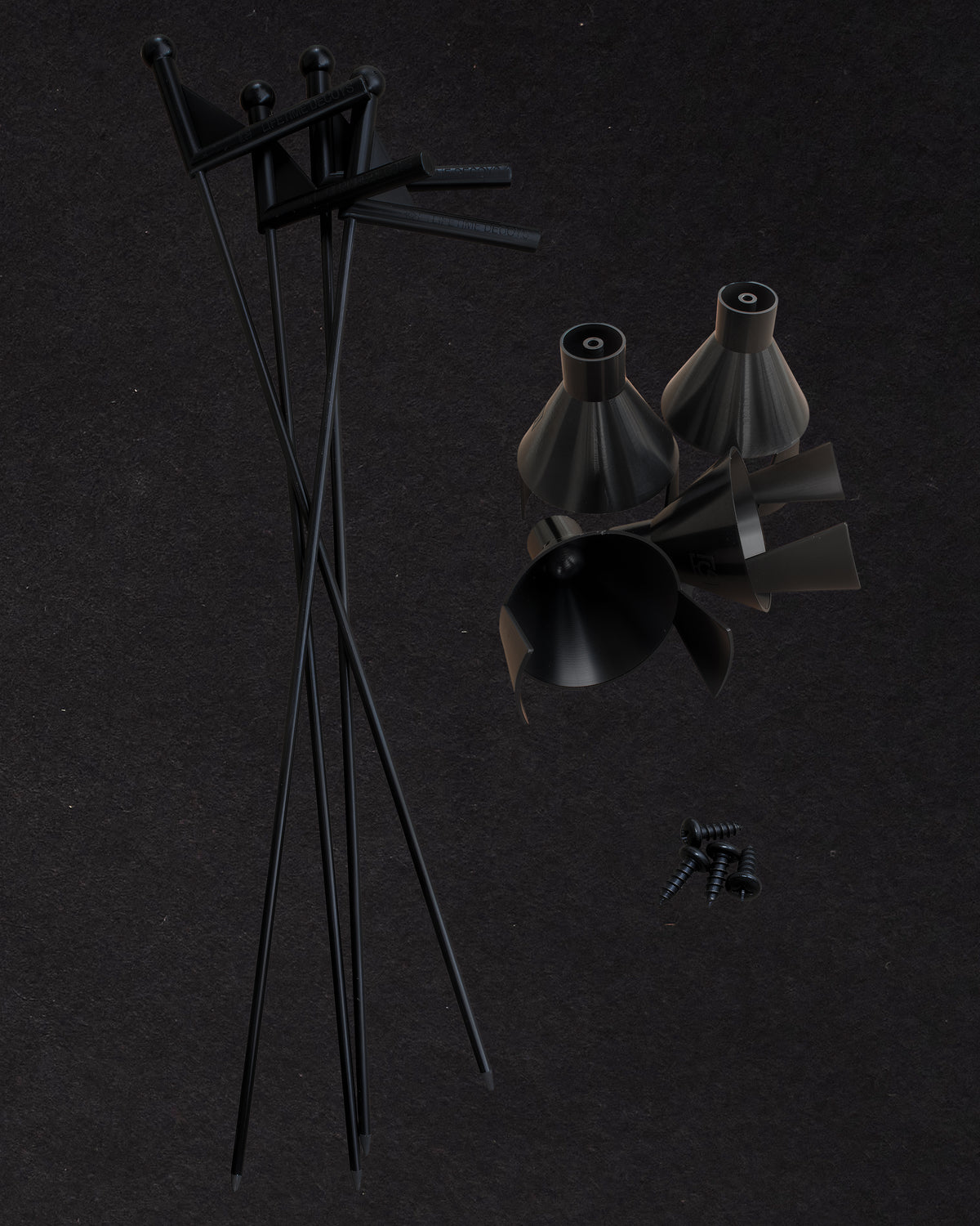 4 Stakes, 4 Cones and 4 Screws included.