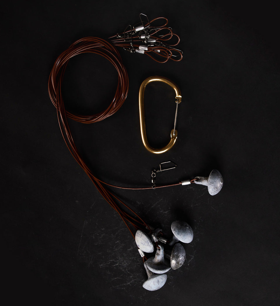 The 6’ 10oz mushroom weight configuration provides maximum grip to the bottom, making this the go to rig when hunting heavy current or wind in deeper waters. This rig is ideally suited for use with goose floaters in all situations. Includes 6 complete rigs, 1 HangAll Carabiner, and mesh bag.